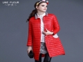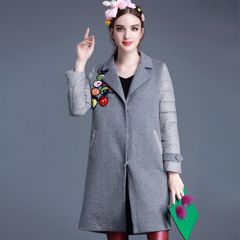 2015秋冬新款 重工卡通貼布貂絨針織修身拼接袖子羽絨外套女F9033 /