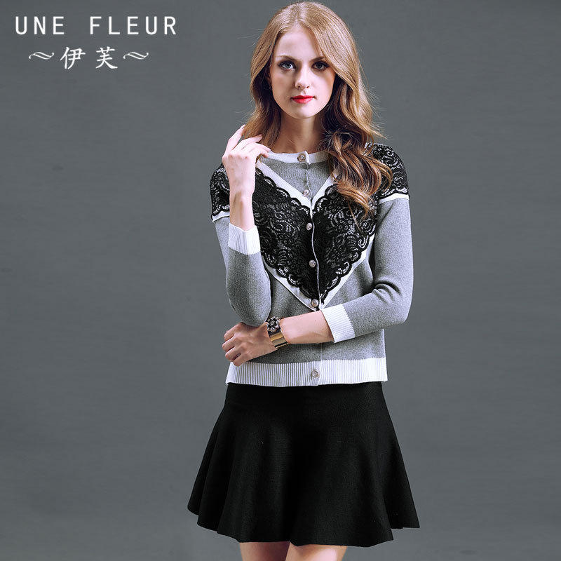 2015秋冬新款女裝 蕾絲拼接針織衫+傘擺半身連衣裙時尚套裝 /