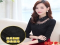 2015秋冬新款時尚韓版拼皮加絨加厚打底長袖蕾絲衫女裝爆款 /