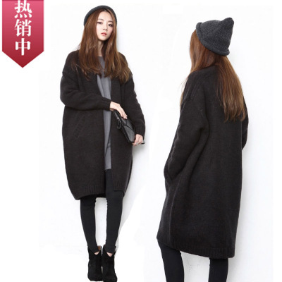 2015秋冬外套大碼加厚毛衣蝙蝠袖寬松中長款冬季羊毛衣開衫 /