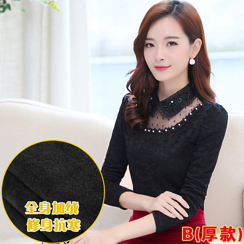 模特實拍 2015冬裝娃娃領加厚保暖打底衫 加絨蕾絲衫 M~3XL碼 /