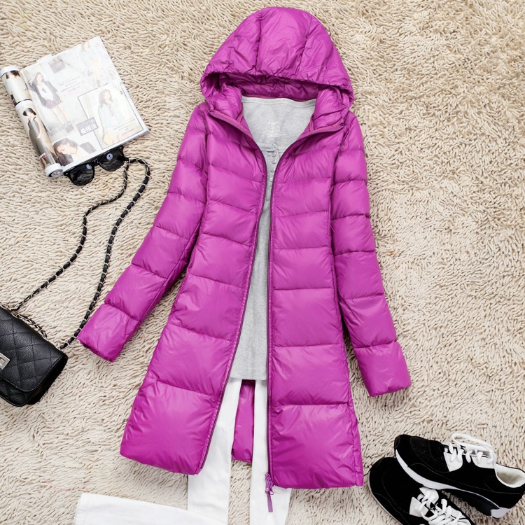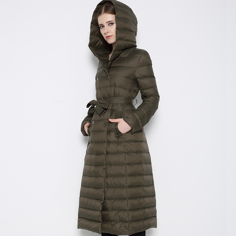 羽絨服女歐美高端大牌過膝超加長款輕薄連帽修身羽絨服外套大碼 /