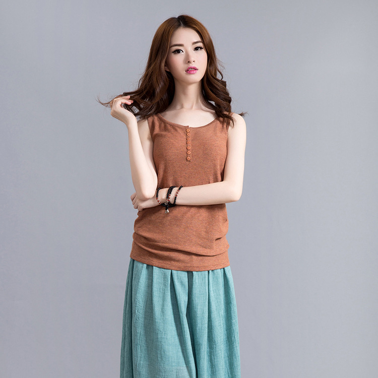 簡介: 貨號0398# 產地東莞 主圖來源實拍有模特 貨源類別現貨 產品類別小背心 風格森女 款式工字型 領型圓領 版型寬松型 衣長中長款(65cm<衣長≤80cm) 圖案純色 流行元素紐扣,立體裝飾 上市年份/季節2015春季 面料名稱棉麻 主面料成分棉 主面料成分的含量85(%) 顏色白色,黑色,咖啡色,檸檬黃,淺灰,磚紅色,牛仔藍,橘紅,米色(杏色),紫紅色,草綠色 尺碼均碼 面料混紡