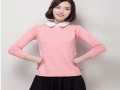 2015假兩件套女裝春季韓版純色針織衫套頭娃娃領(lǐng)寬松長袖毛衣 /