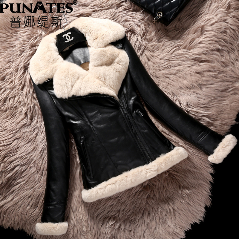 2015新款皮毛一體真皮皮衣女短款加厚羊皮皮衣修身外套獺兔毛內膽 /
