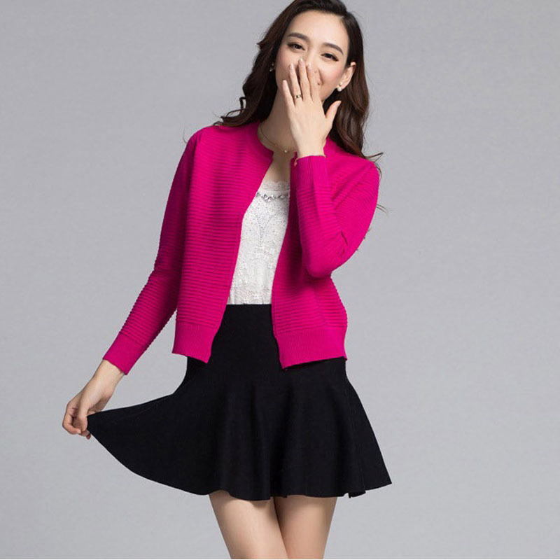 2015秋新品時尚韓版甜美百搭修身顯瘦圓領外套短裝針織衫毛衣外套 /
