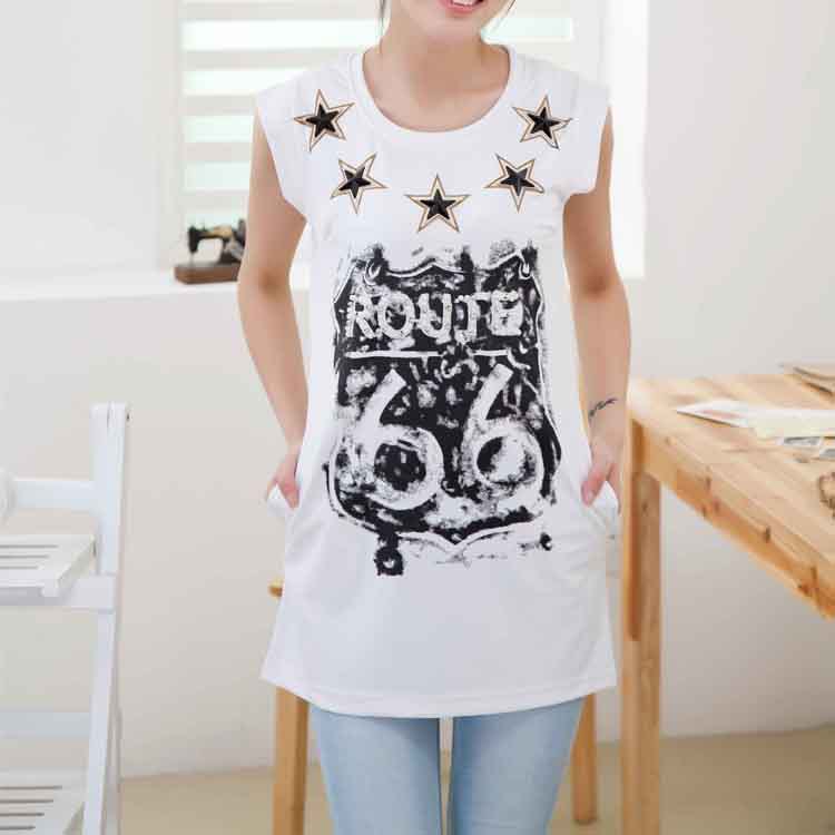 2015夏季印花釘珠五角星裝飾韓版針織T恤一件代發(fā) /