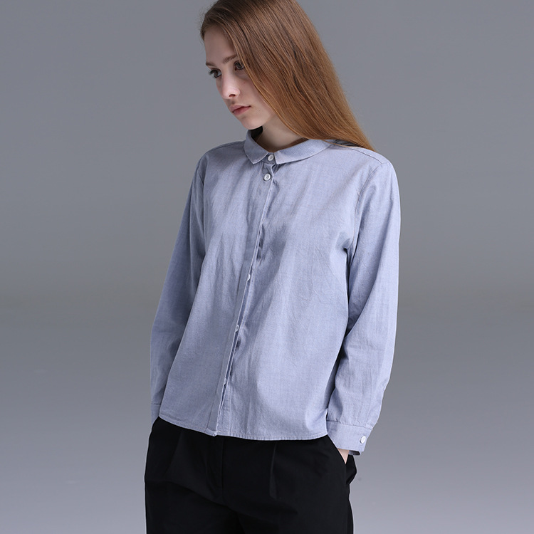 原創女裝初心秋冬新款純棉經典翻領簡潔設計高支棉長袖襯衫 /
