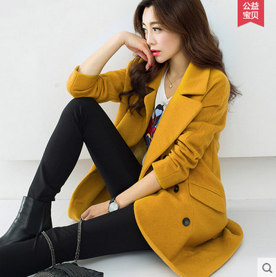 批發2015秋冬新款韓版女毛呢大衣寬松大碼中長款毛呢妮子外套風衣 /