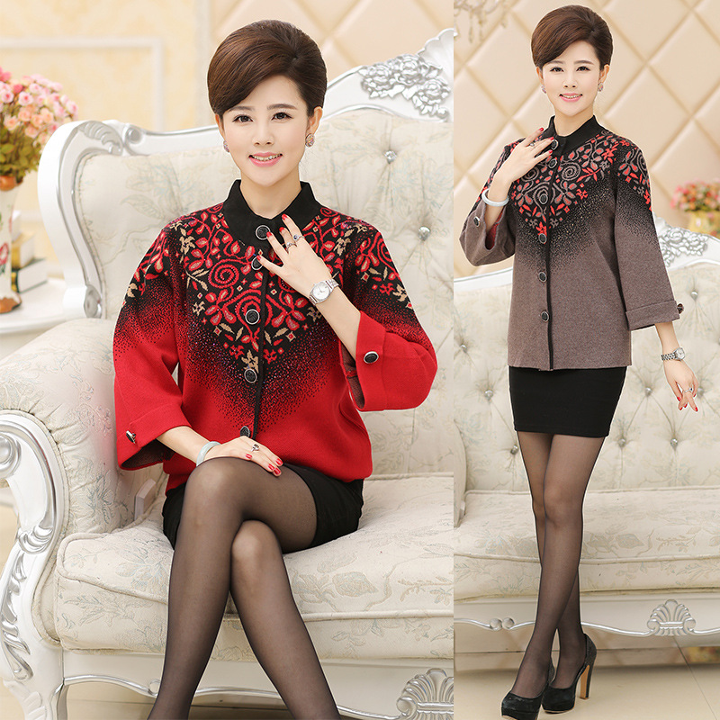 中老年女裝秋裝外套針織衫開衫中年九分袖羊毛衫上衣40-50媽媽裝 /