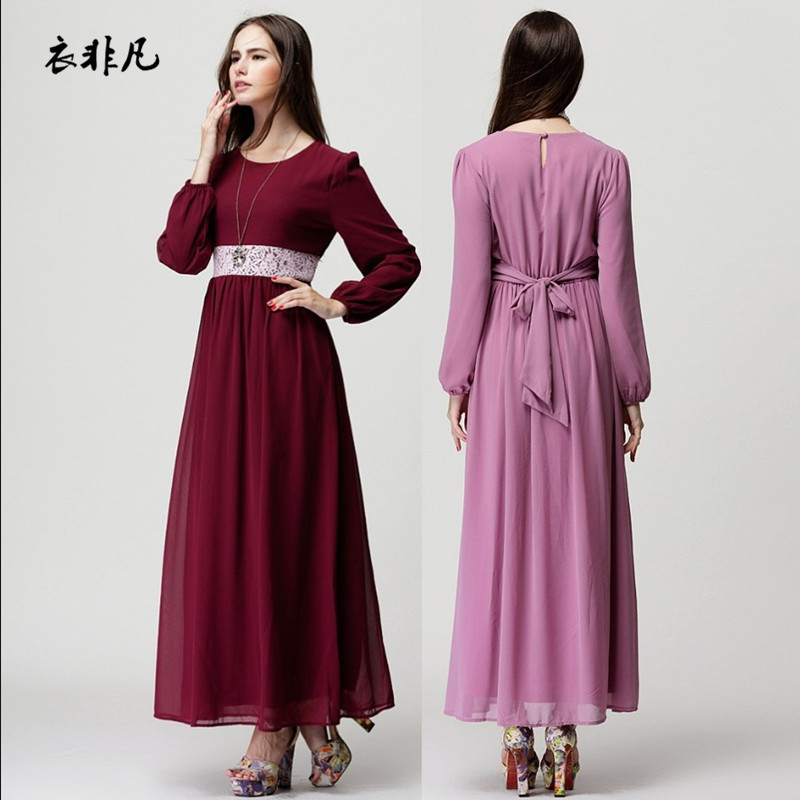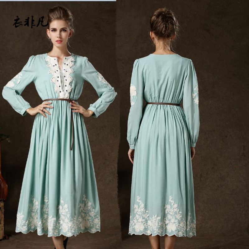 秋裝網絡爆款原廠正品關于復古刺繡優雅長袖長裙穆斯林回族服飾女 /