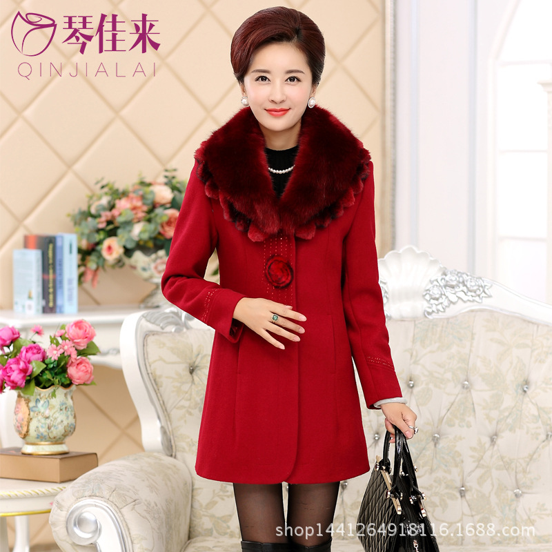 新款中老年女裝毛呢外套品牌媽媽呢子大衣大碼毛領(lǐng)中長(zhǎng)款加厚批發(fā) /