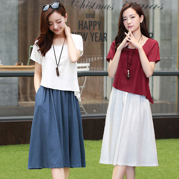 簡介: 貨源類別現貨 主圖來源實拍有模特 風格森女 圖案純色 工藝高溫定型 產地杭州 款式基本款 組合形式假兩件 裙長中長裙 裙型A字裙 領型圓領 袖型常規袖 袖長短袖 腰型中腰 衣門襟套頭 流行元素撞色,不規則 上市年份/季節2015夏季 面料名稱棉麻 主面料成分棉 主面料成分的含量50(%)