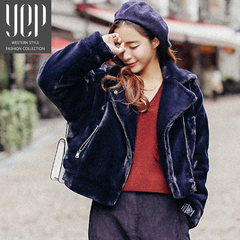 YEP2015冬裝新品韓版修身帥氣個性機車夾克毛絨厚短外套上衣潮女 /