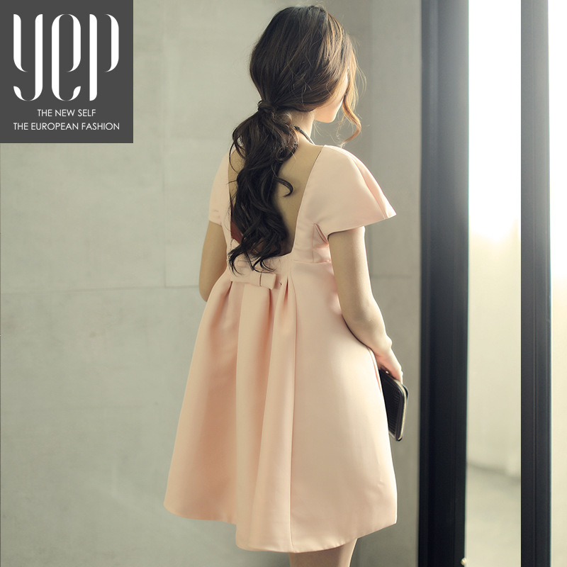 2015年夏裝新款甜美短袖大碼露背蝴蝶結高腰連衣裙 蓬蓬裙 /