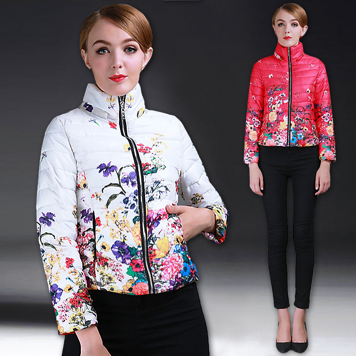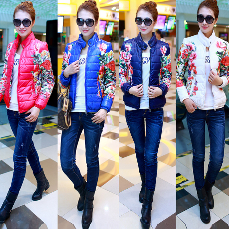 2015冬季新款女裝印花修身時尚短款羽絨服女輕薄款棉衣棉服外套潮 /
