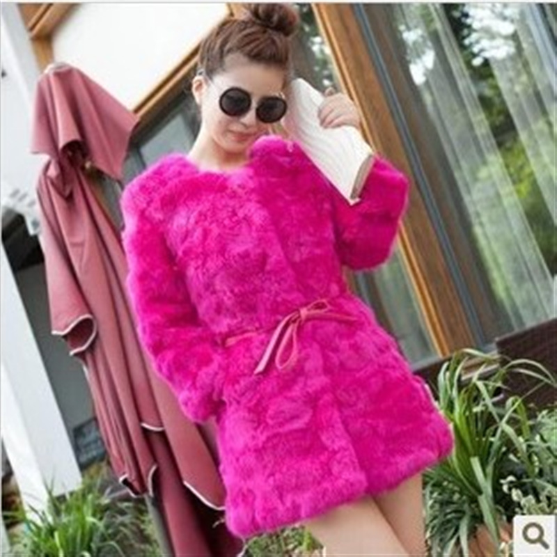 獺兔毛皮草七分袖圓領(lǐng)中長款外套修身時尚品牌加厚保暖大衣外套 /