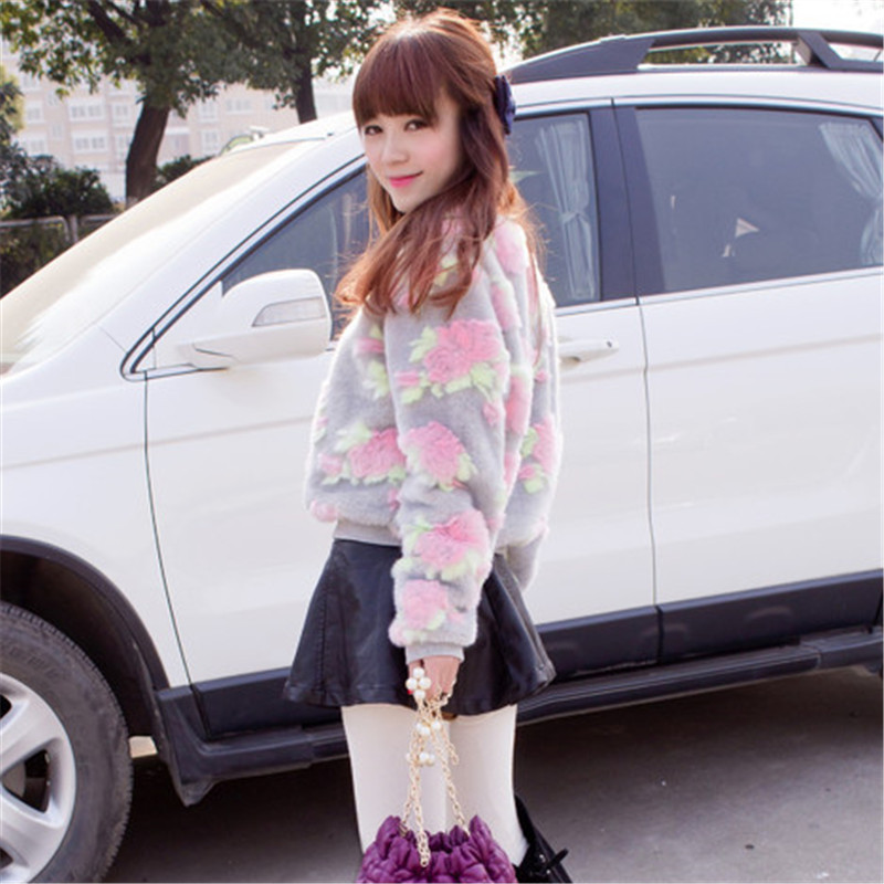 仿兔毛皮草立體玫瑰花套頭毛寬松加厚衛(wèi)衣時尚百搭品牌女裝廠家直 /