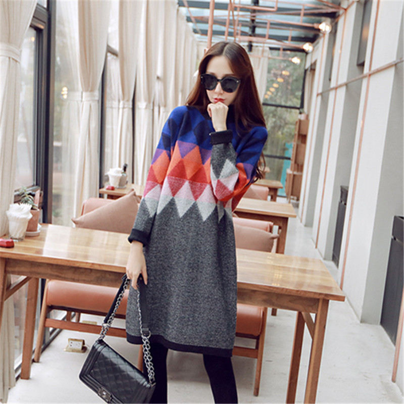 韓國東大門代購冬季韓版小高領(lǐng)毛衣寬松中長款長袖針織打底連衣裙 /