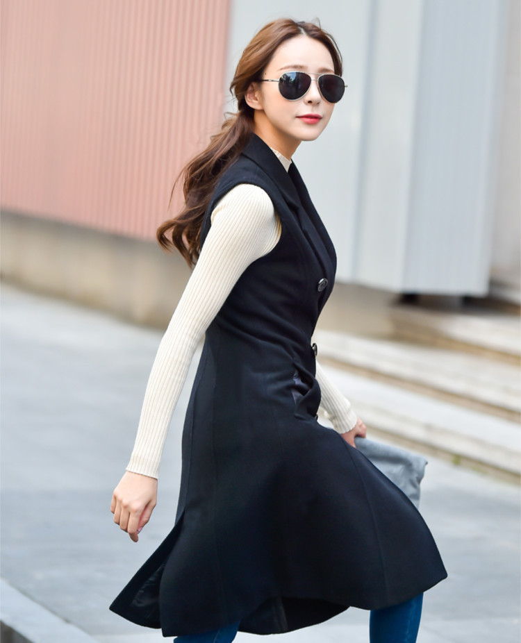 實(shí)拍2015秋冬新款簡(jiǎn)單馬夾歐美風(fēng)長(zhǎng)款翻領(lǐng)純色馬甲女潮廠家批發(fā) /