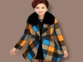 秋冬新款中老年女裝羊毛尼大毛領(lǐng)格子風(fēng)衣媽媽裝格子加厚毛呢外套 /