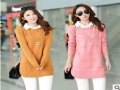 2015春秋冬中長款女韓版襯衫領針織打底衫套頭釘珠蝴蝶結寬松毛衣 /
