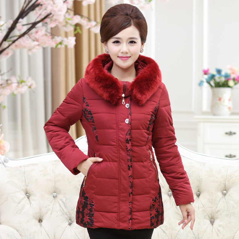 2015新款中老年女裝冬裝棉衣中長款棉服中年媽媽裝毛領外套 批發 /