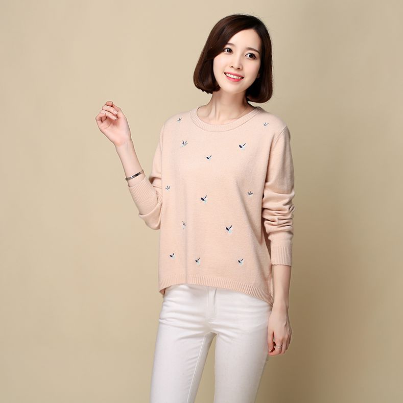 冬裝新品毛衣女天鵝繡花厚款長袖保暖韓國甜美純羊毛打底衫東大門 /