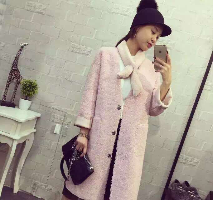 儷人*2015秋冬裝新品高品質(zhì)大牌范兒羊羔毛皮毛一體大衣外套 /