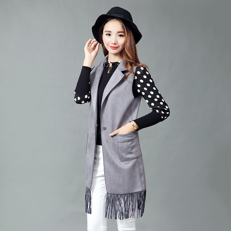 2015秋冬新款女士馬甲 韓版時尚外穿百搭流蘇開衫麂皮絨馬甲批發(fā) /