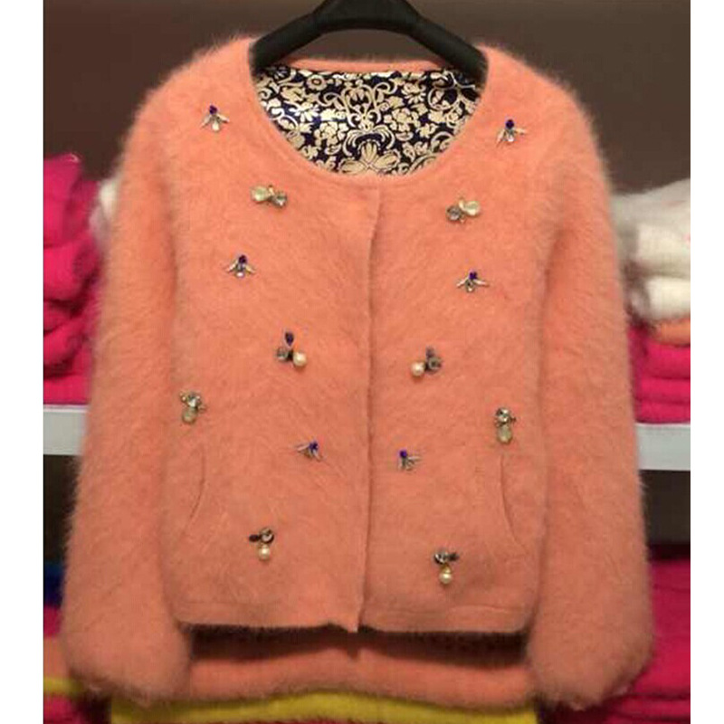 秋冬新款貂絨大衣女 高檔圓領(lǐng)正品短款貂絨毛衣開衫小香風(fēng)外套 /