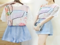 歐洲站2015新款夏裝休閑套裝韓國代購印花短褲兩件套廠家直銷 /