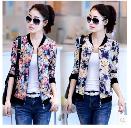 歐洲站2015秋裝新款韓版短外套女 修身印花棒球服 休閑開衫衛衣 /