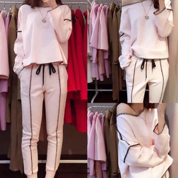 韓國東大門代購2015秋裝新款棉休閑運動套裝套頭衛衣長袖兩件套女 /