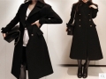 羊毛呢大衣2015秋冬裝新款修身顯瘦歐美長款加厚黑色呢子外套女裝 /