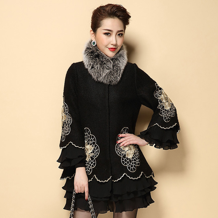 2015中老年女裝秋冬新款時尚媽媽裝刺繡亮麗中長款外套大衣45-55 /