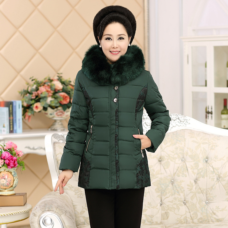 中老年女裝棉衣50-60中年女外套羽絨棉服中長款毛領棉襖加厚批發 /