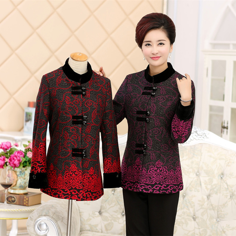 中老年女裝2015秋冬新款外套 中年50-60歲唐裝媽媽裝羊毛呢外套 /
