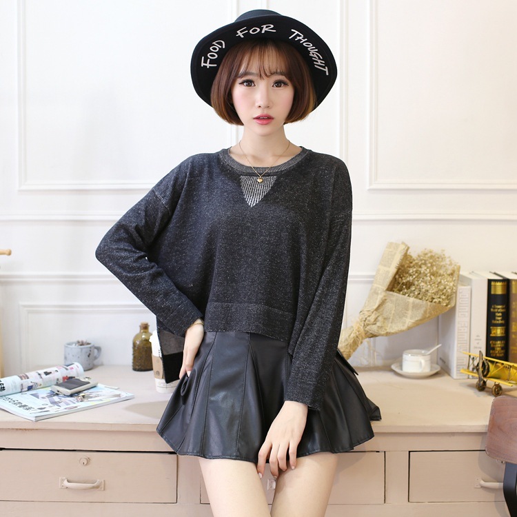 2015秋冬新款毛衣圓領套頭蝙蝠衫不對稱下擺寬松外套韓版針織衫 /