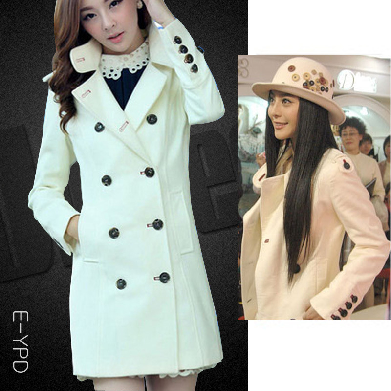 2015秋冬新款范冰冰同款修身白色毛呢短中長厚外套大衣風衣 /