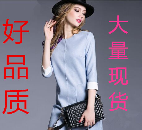 秋冬短裙2015女裝新款鹿皮絨A字裙七分袖修身顯瘦打底連衣裙女潮 /