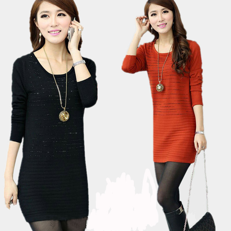 2015女式中長款圓領套頭針織打底毛衣 冬季女裝韓版鑲鉆打底衫 /