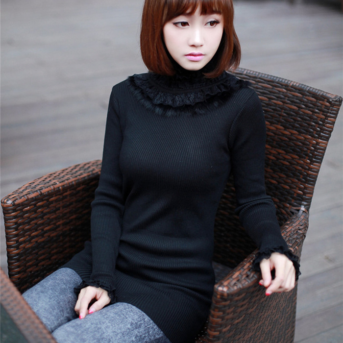 兔毛領秋冬女式針織衫打底中長款套頭高領韓版毛衣女裝毛衫批發 /