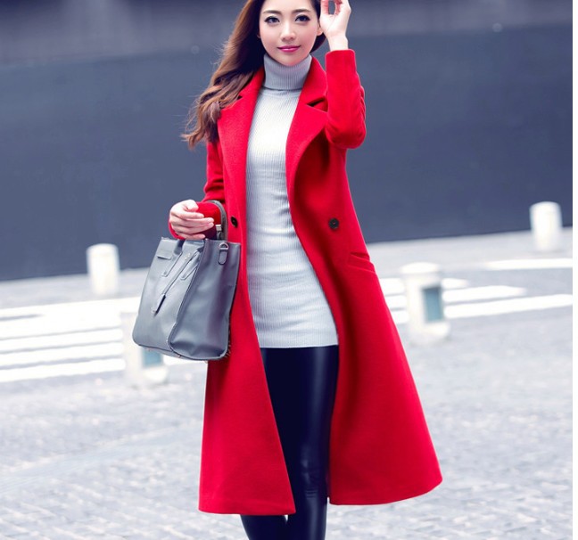 2015冬季女裝 超長呢子大衣氣質(zhì)修身加厚長款過膝毛呢外套 批發(fā) /