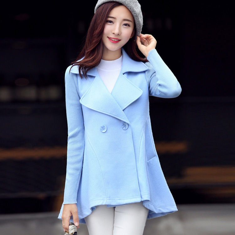 2015新款甜美修身外套 顯瘦長袖呢子外套 中長款毛呢大衣女裝批發 /