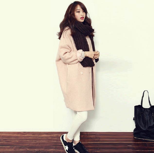 2015新款韓版毛呢外套女中長款韓范秋冬加厚寬松繭型韓國呢 /