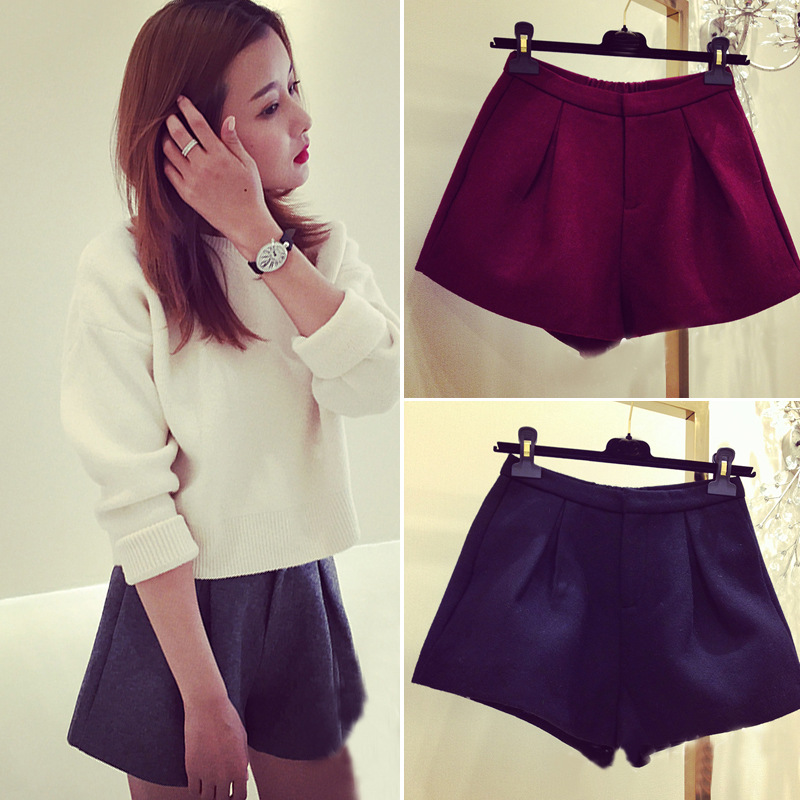 2015秋冬新款韓版松緊腰闊腿毛呢短褲 廠家批發(fā)女式休閑短褲3836 /