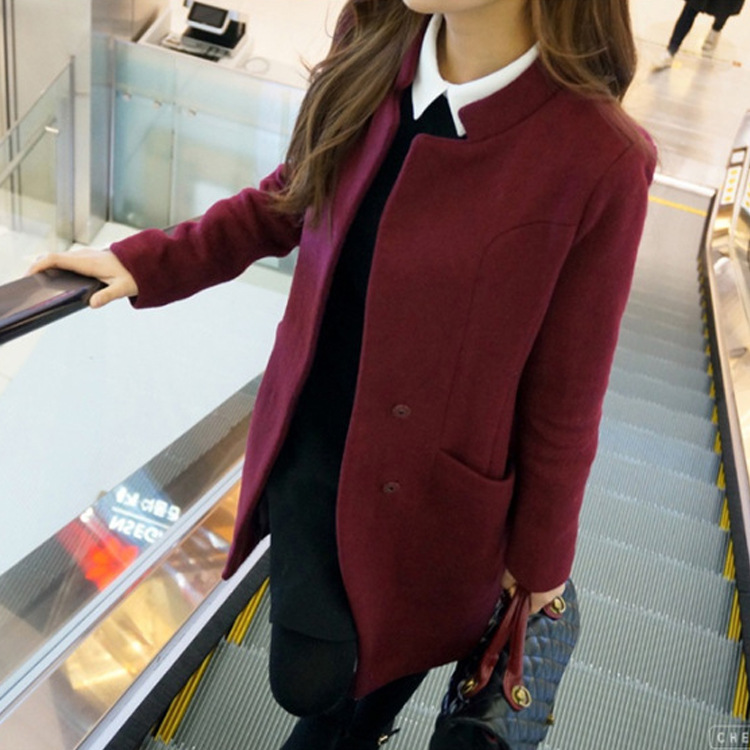 毛呢外套女 韓版2015秋冬新款中長款雙排扣修身顯瘦大衣一件代發(fā) /
