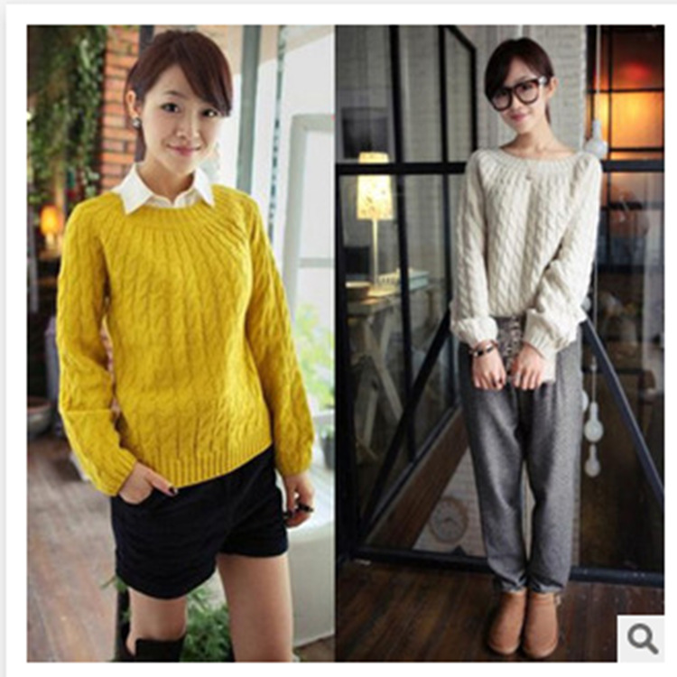 2015春秋冬季毛衣金典款韓版女裝套頭麻花純色女針織衫廠家批代發 /