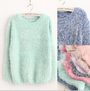 2015春秋爆款韓版寬松女士馬海毛長毛絨純色圓領套頭毛衣廠家直銷 /